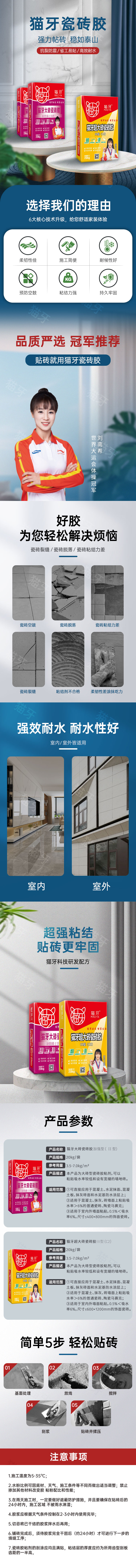 柔韧性佳 预防空鼓 持久牢固 耐候性能佳 超强粘结 抗裂防震 省工易贴 高效耐水