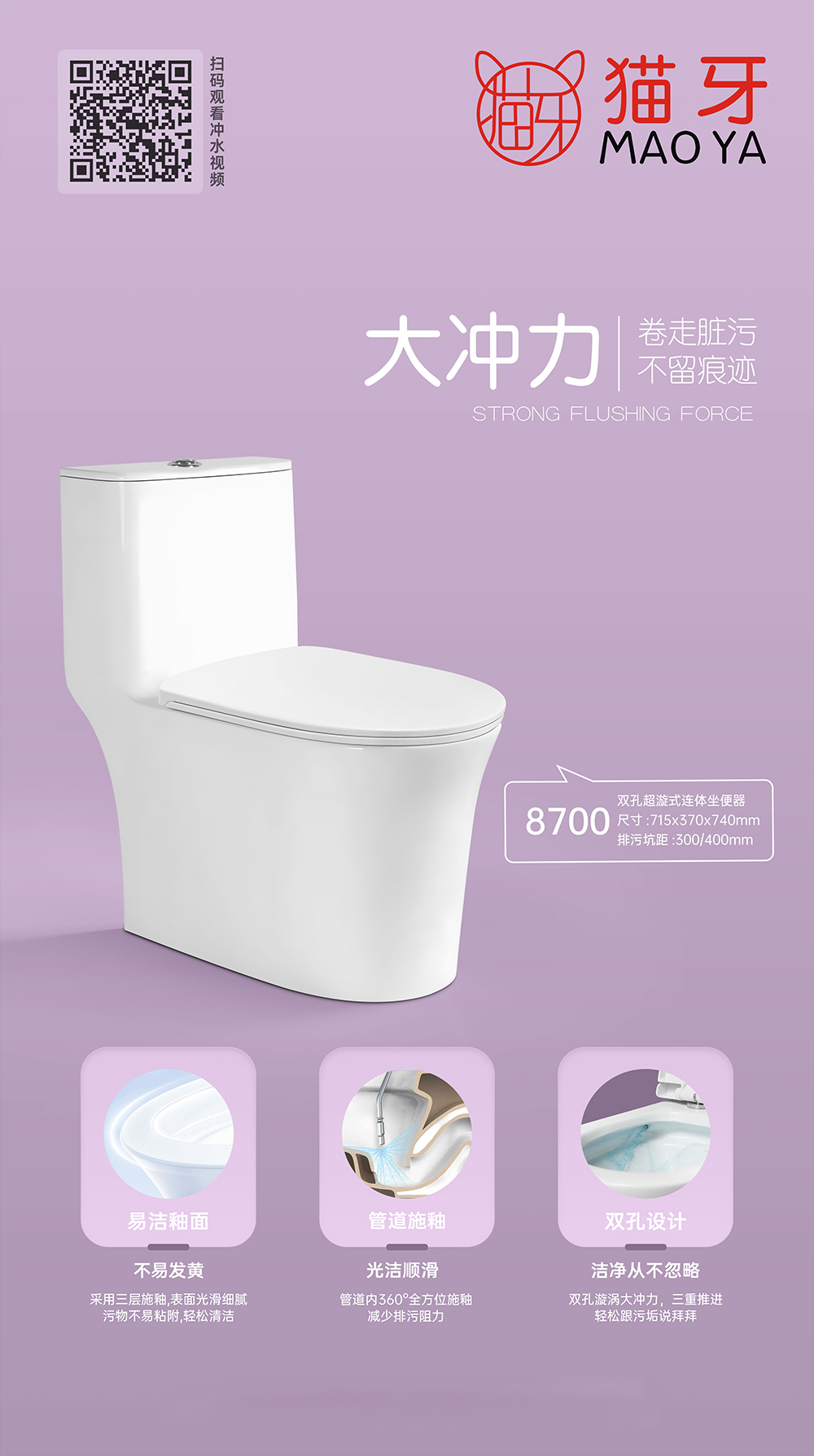 猫牙8700 大力冲 双孔设计 陶瓷坐便器